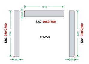 From a reinforcement point of view, the G1-2 consists of three boundary (hidden) columns: the 450/450/250/250 ‘L’ section column a1-2, the rectangular column a1-0 with a cross section of 250/450, the 450/250 rectangular column a2-0 and the shear walls’ main bodies Sh1 and Sh2 with sections equal to 250/1200 and 1500/250 respectively.
